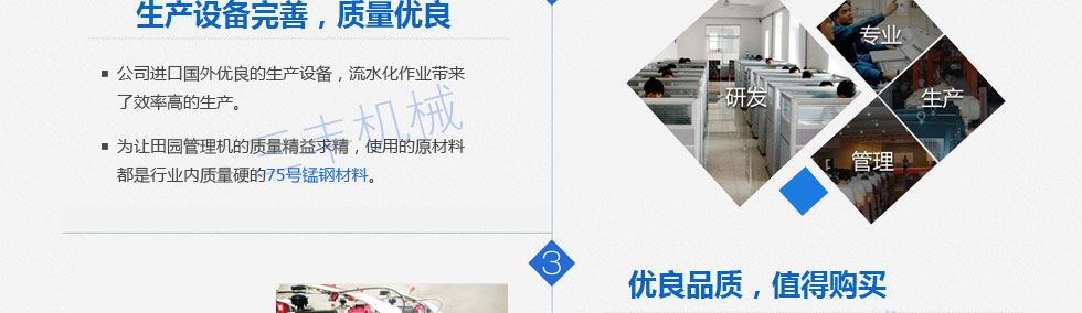 我公司以專注生產微耕機為主,具有自主開發研制新產品的能力,我公司開發研制的新型農機產品是集眾家之長,匯集了一批經驗多、高素質的優良人才,采用了世界優良的經營理念,建立了完整的質量保障...