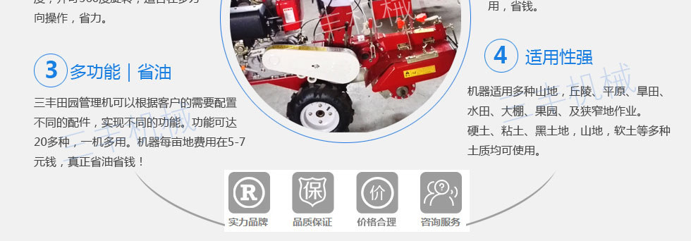 安丘市三豐機械有限公司是一家微耕機專注生產廠家,公司坐落于環境優雅、經濟發達的山東省安丘市,地理條件優良。